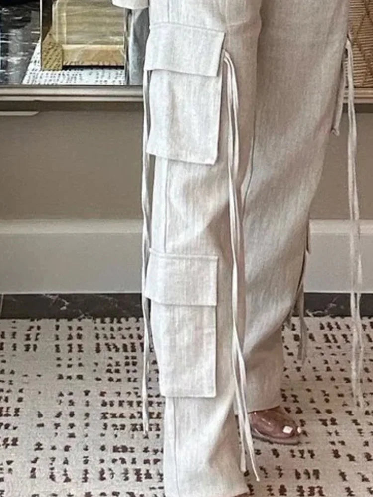 Suit Set Multi Pocket Ribbon Blazer & Pants Two Piece